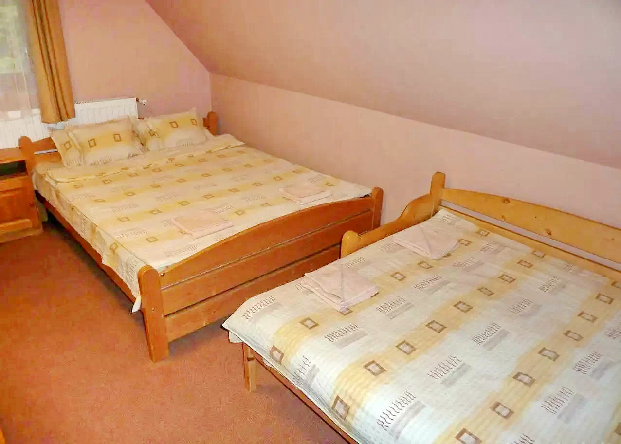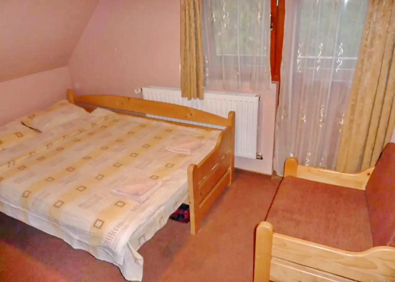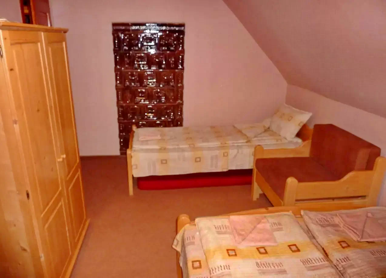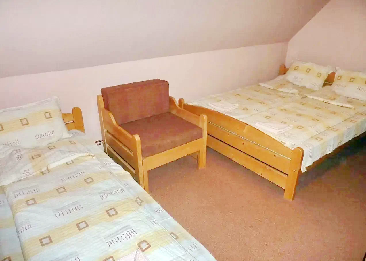szoba: 1 kétszemélyes ágy + 1 egyszemélyes ágy (3 fő)
