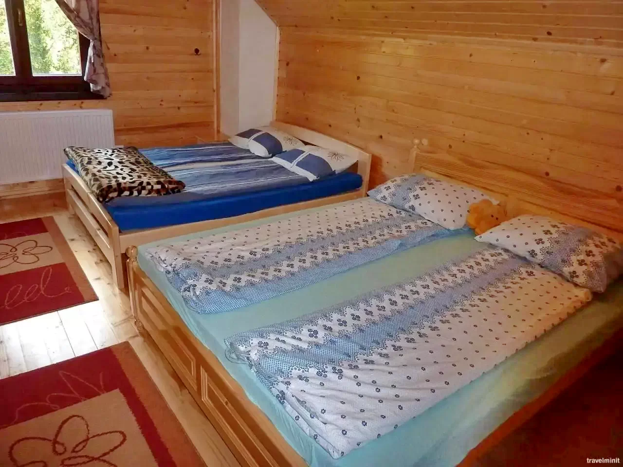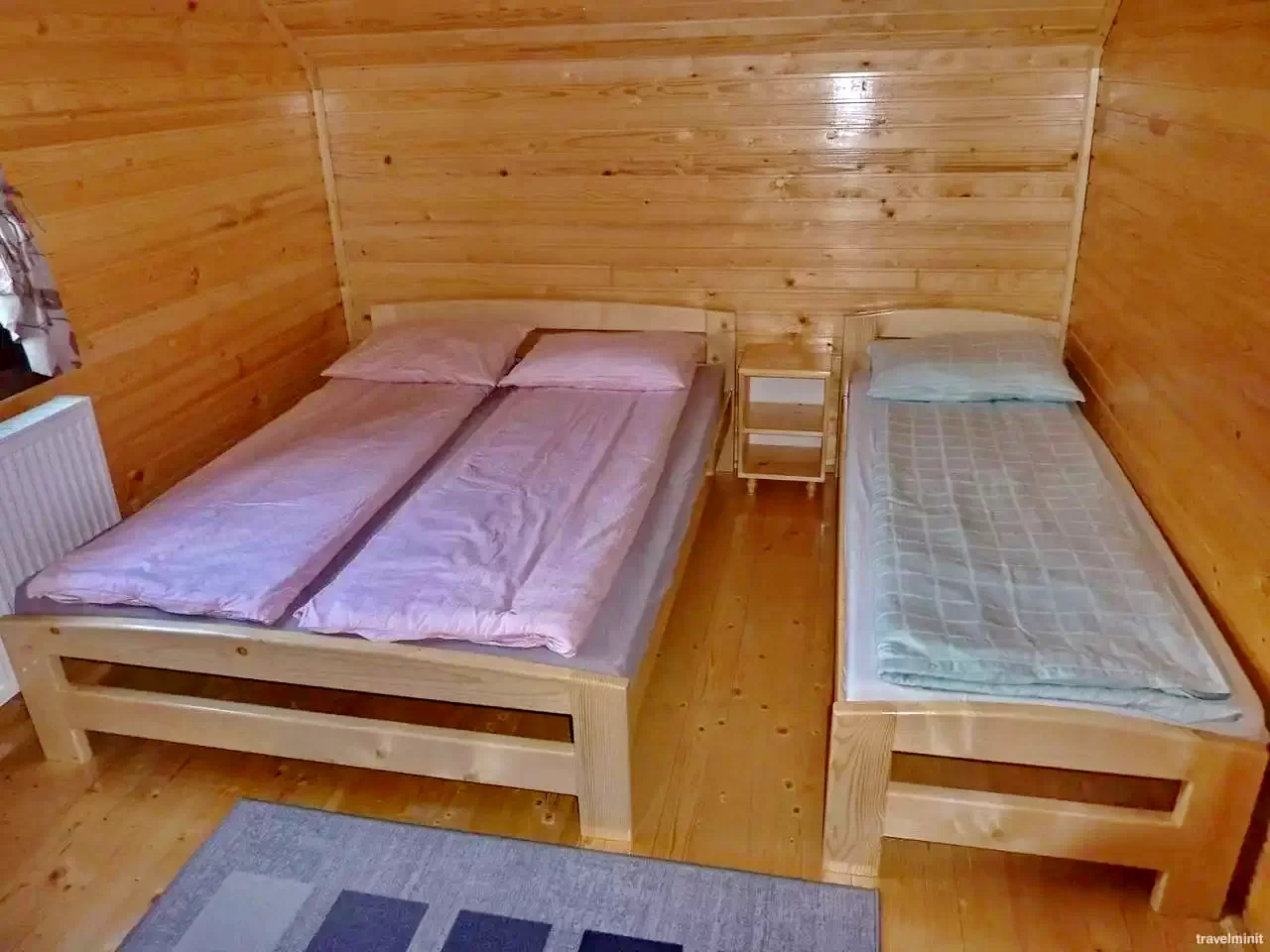 szoba: 1 kétszemélyes ágy + 1 egyszemélyes ágy (3 fő)