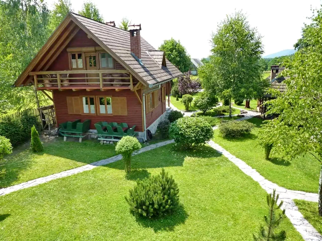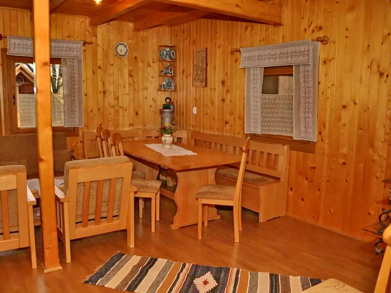 - A kulcsosház három különálló épületből áll: egy főépületből és két téliesített kisházból, amelyek együttesen 9+2 fő kényelmes elszállásolására alkalmasak.