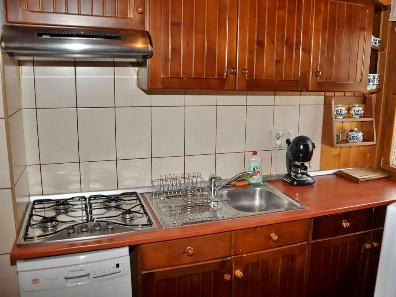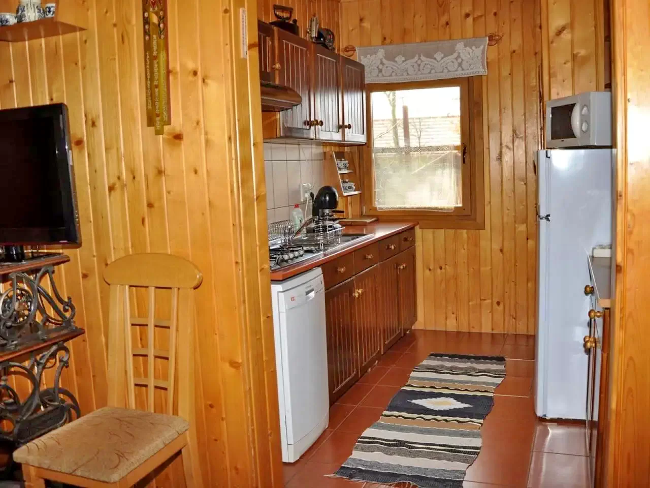 - A kulcsosházban teljesen felszerelt konyha áll a vendégek rendelkezésére, amely minden szükséges eszközzel – mosogatógép, hűtőszekrény, mikrohullámú sütő, kenyérpirító, kávéfőző, edények, evőeszközök – ellátja az önellátó vendégeket.