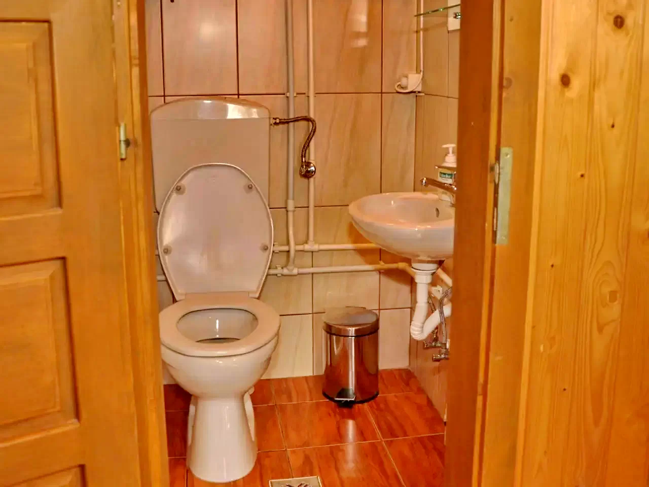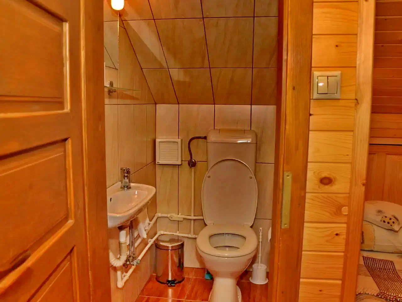 - Földszint: nappali kihúzható kanapéval (2 férőhely), ebédlő, felszerelt konyha, fürdőszoba (zuhanyzó, kézmosó, hajszárító), különálló mellékhelyiség (WC, kézmosó).