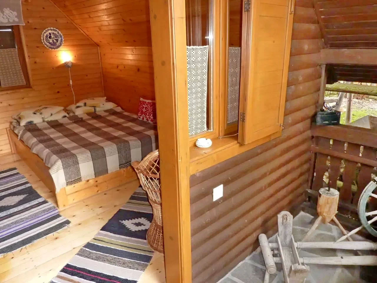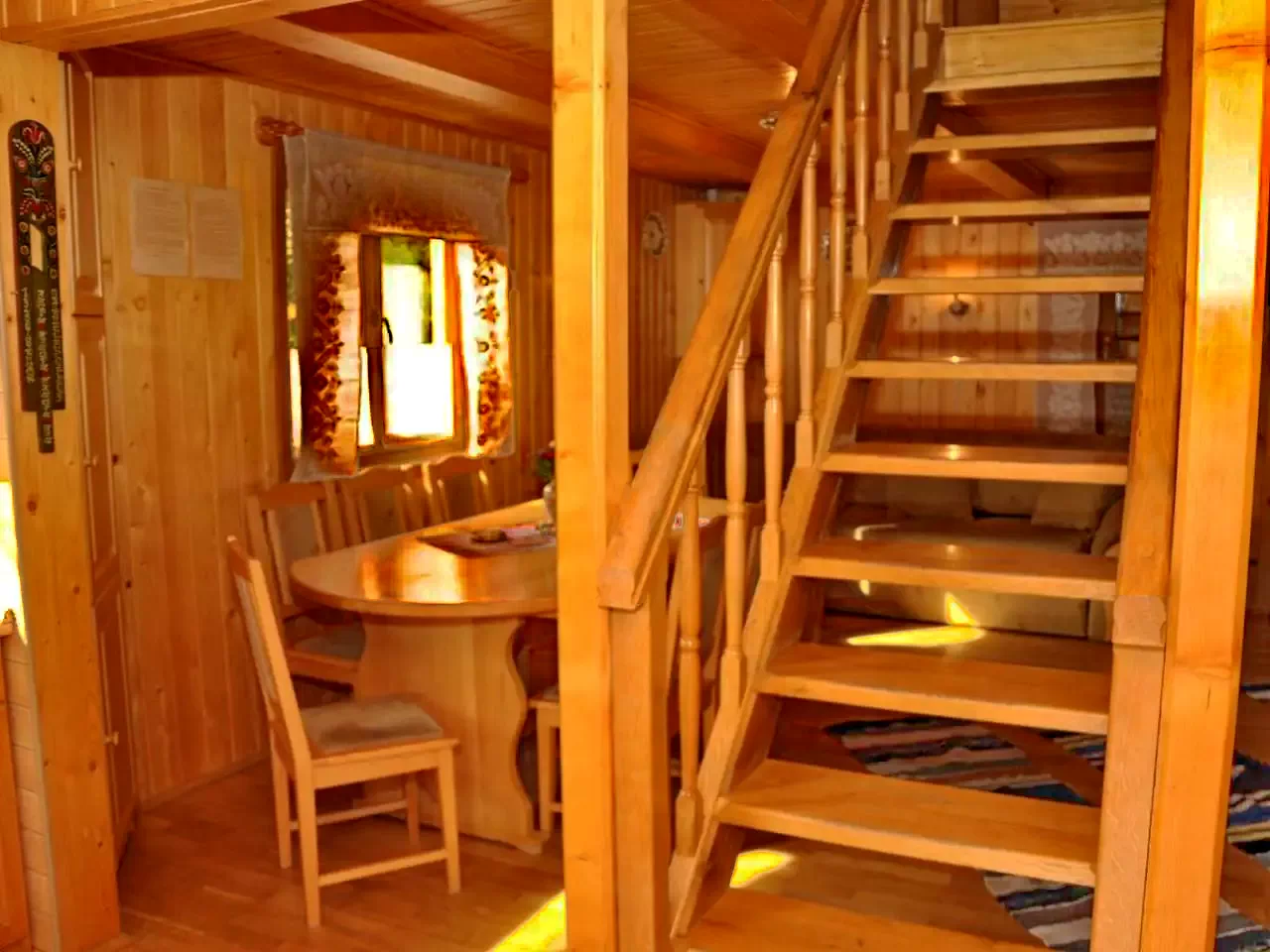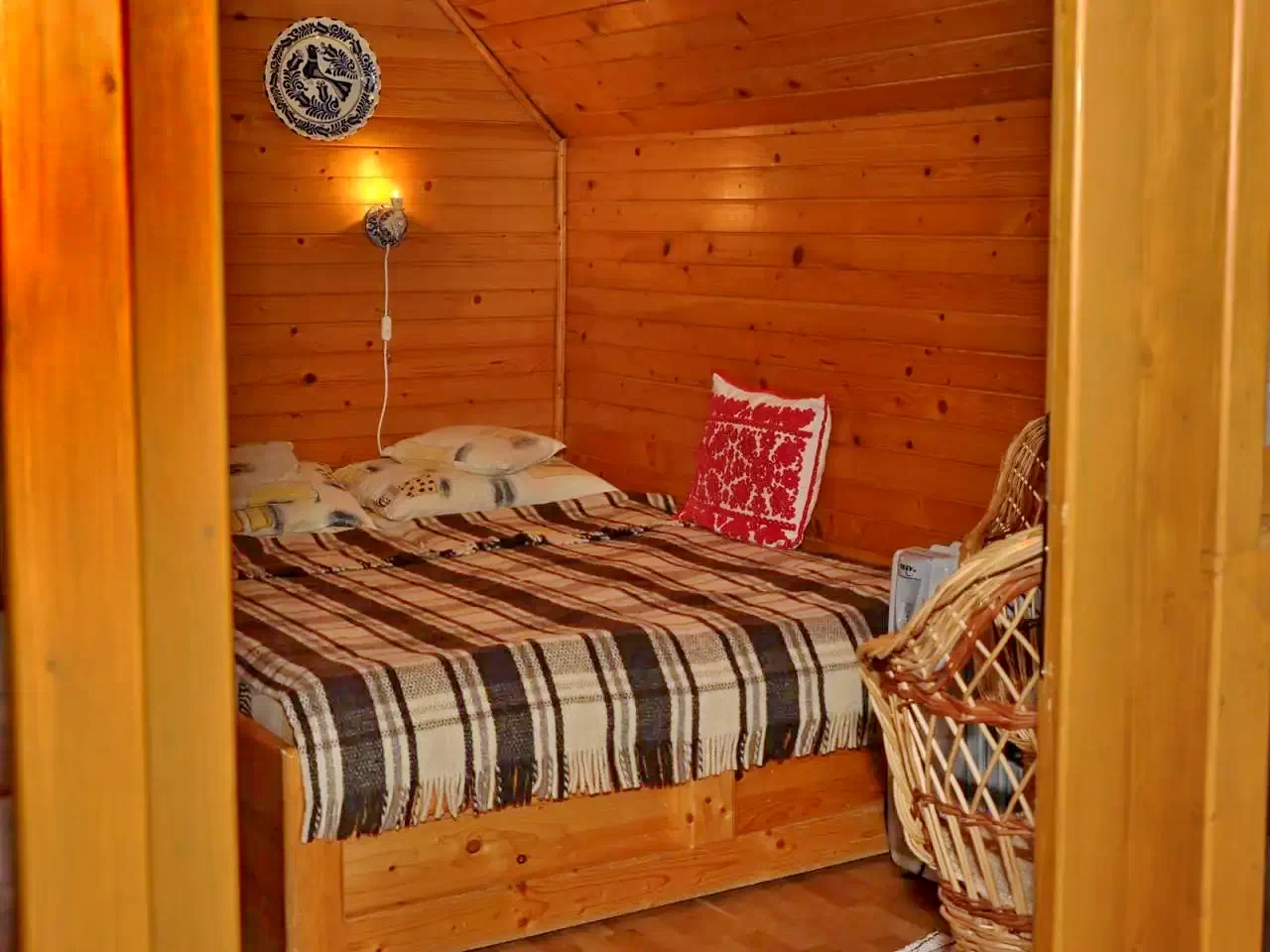 - A főépület (7x7 m) földszintjén tágas nappali, ebédlő és korszerű konyha található, míg az emeleten két kényelmes hálószoba és egy mellékhelyiség szolgálja a vendégek kényelmét.