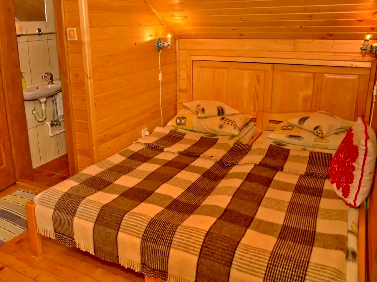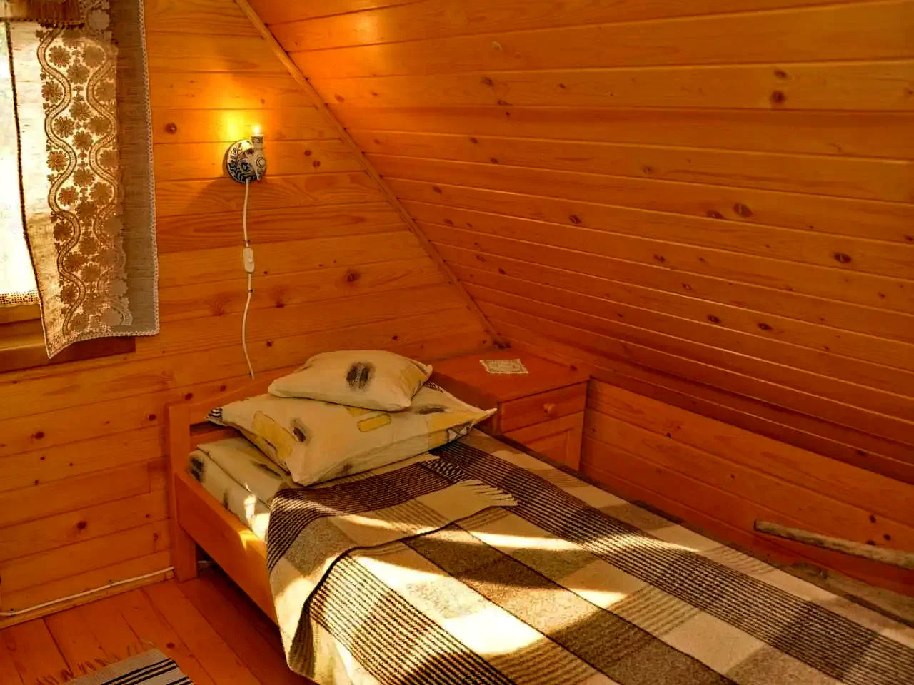 - Emelet: 1 db 2 fős szoba (két egyszemélyes ágy), 1 db 2 fős szoba (kétszemélyes ágy, pótágy), mellékhelyiség (WC, kézmosó).