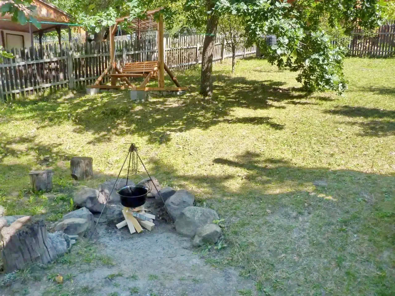- Az udvaron található flekkensütő kemence, bogrács és tárcsalap ideális szabadtéri sütés-főzéshez, ahol a vendégek együtt élvezhetik a közös főzés örömét.