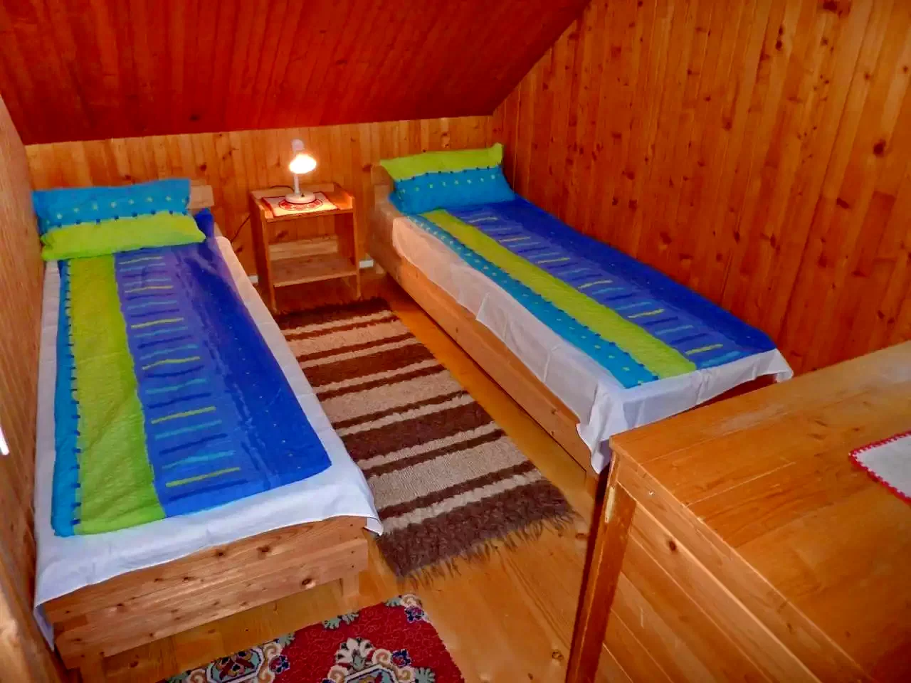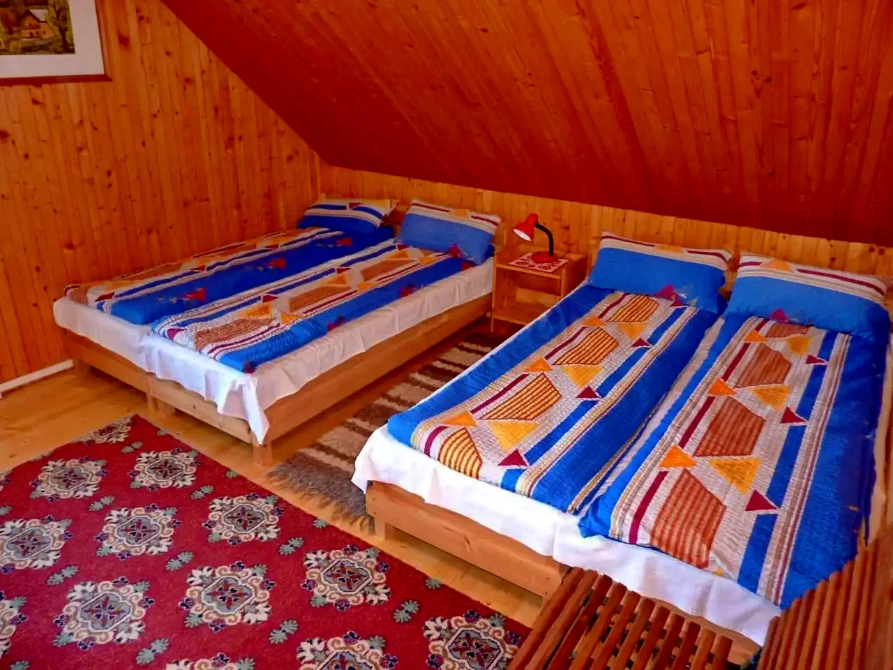 - szoba: két kétszemélyes ágy és egy egyszemélyes ágy (5 fő).
