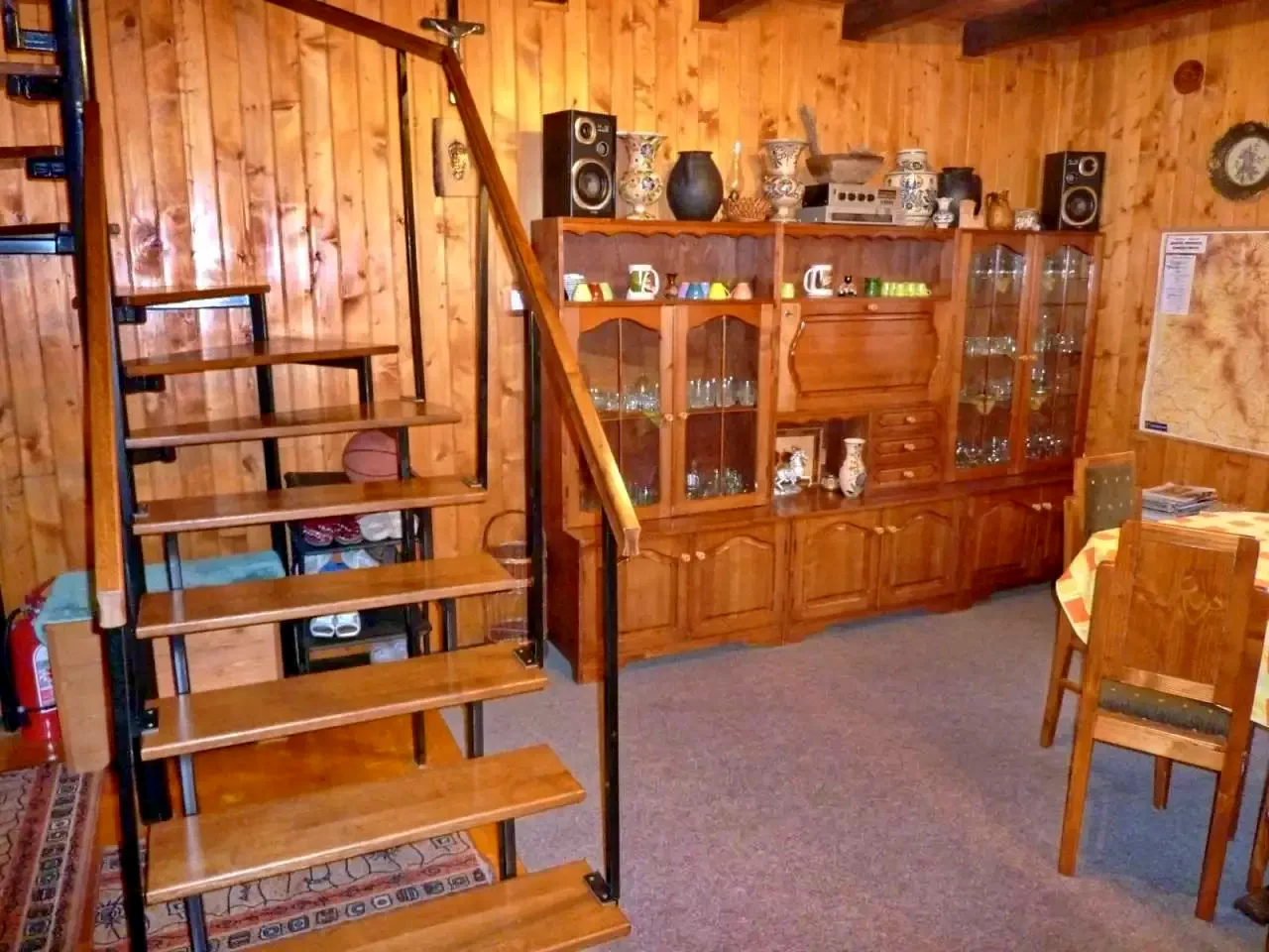 - A földszinten található a nappali-ebédlő kandallóval, a korszerűen felszerelt konyha (kis kapacitású hűtőszekrénnyel), egy fürdőszoba, egy külön WC és a fatüzelésű finn szauna.