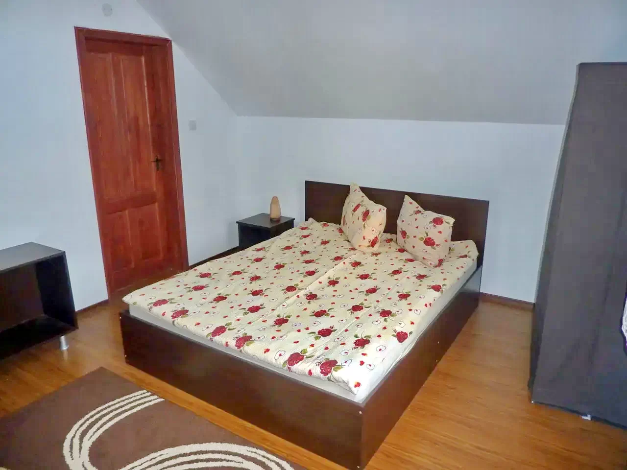 - Az emeleten három szoba van: két szoba egy-egy kétszemélyes ággyal, a harmadik szoba egy kétszemélyes ággyal és egy egyszemélyes ággyal, valamint egy fürdőszoba (káddal, kézmosóval) és egy különálló WC.