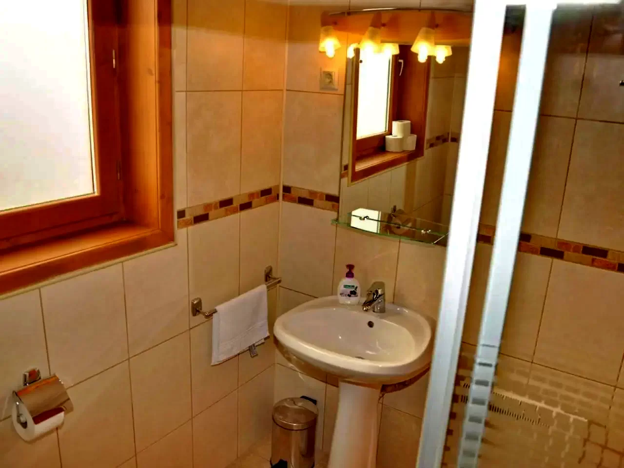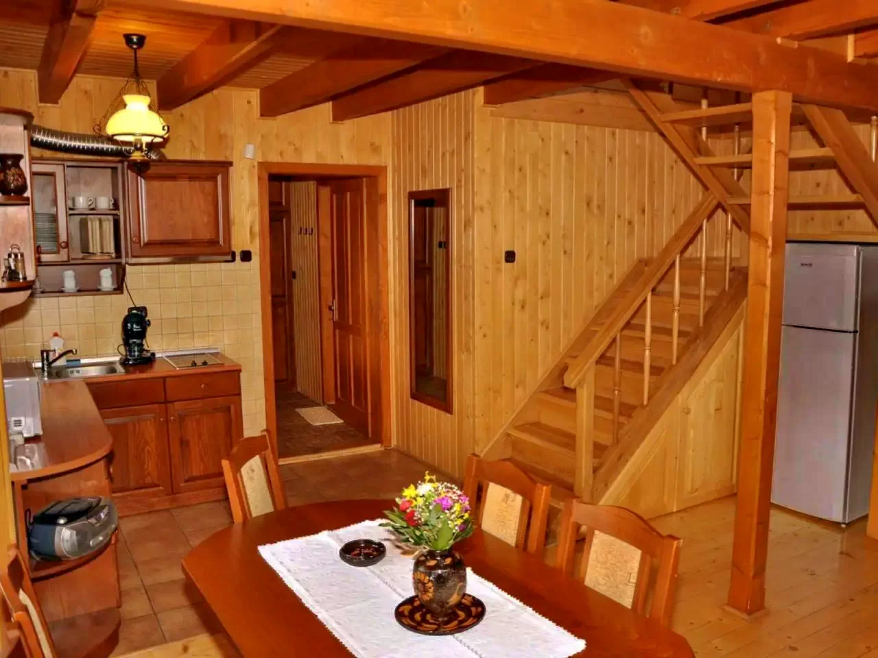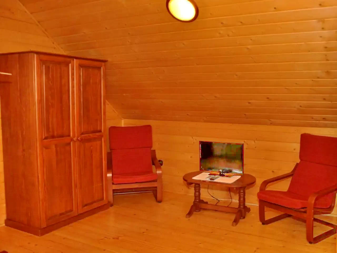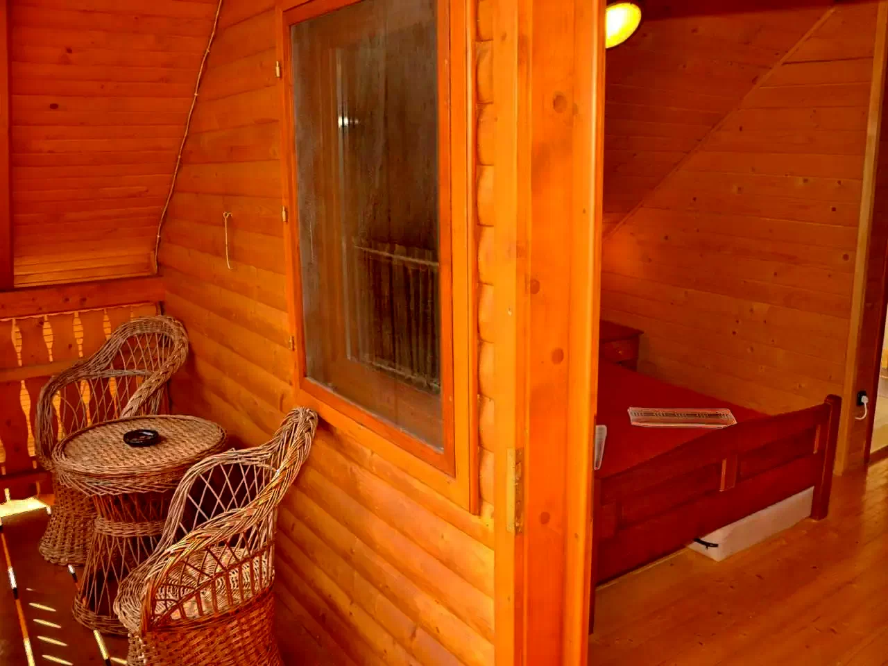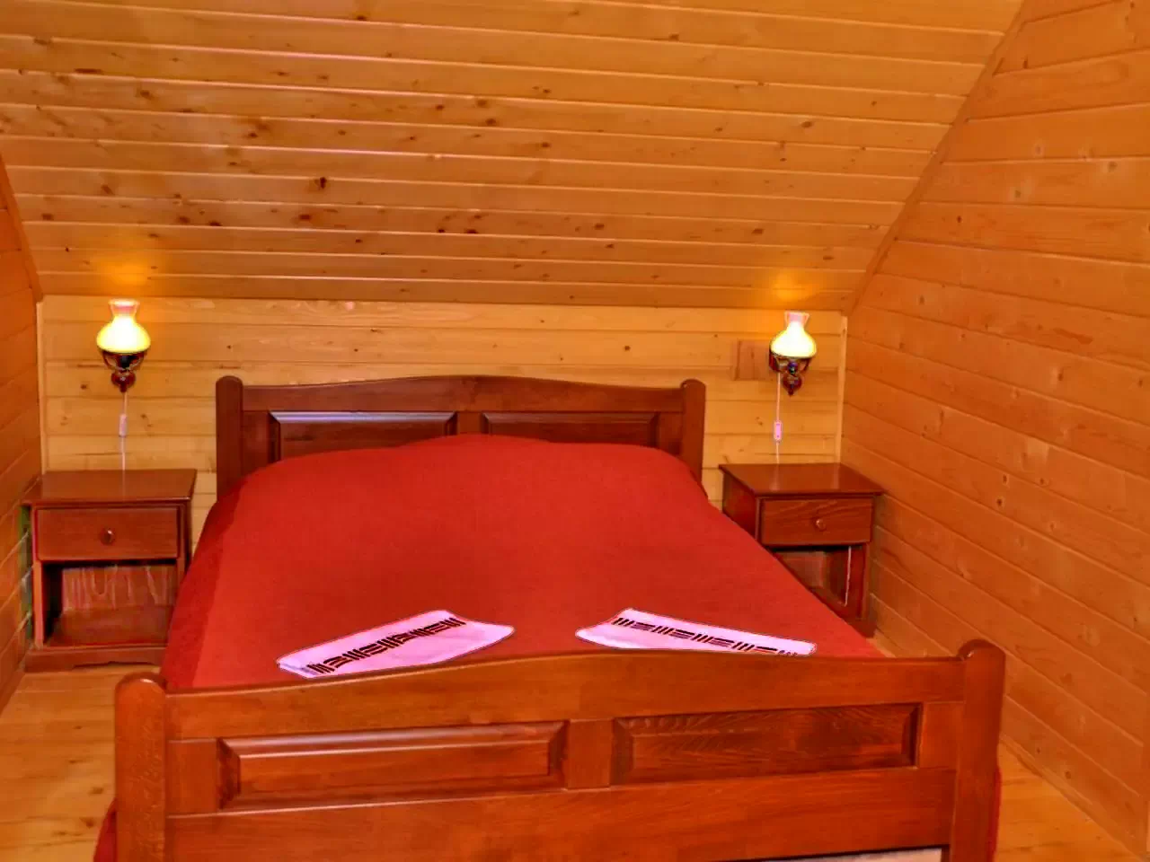 A vendégház egy emeletes, 10x6 méteres faház, amely a következőkből áll: