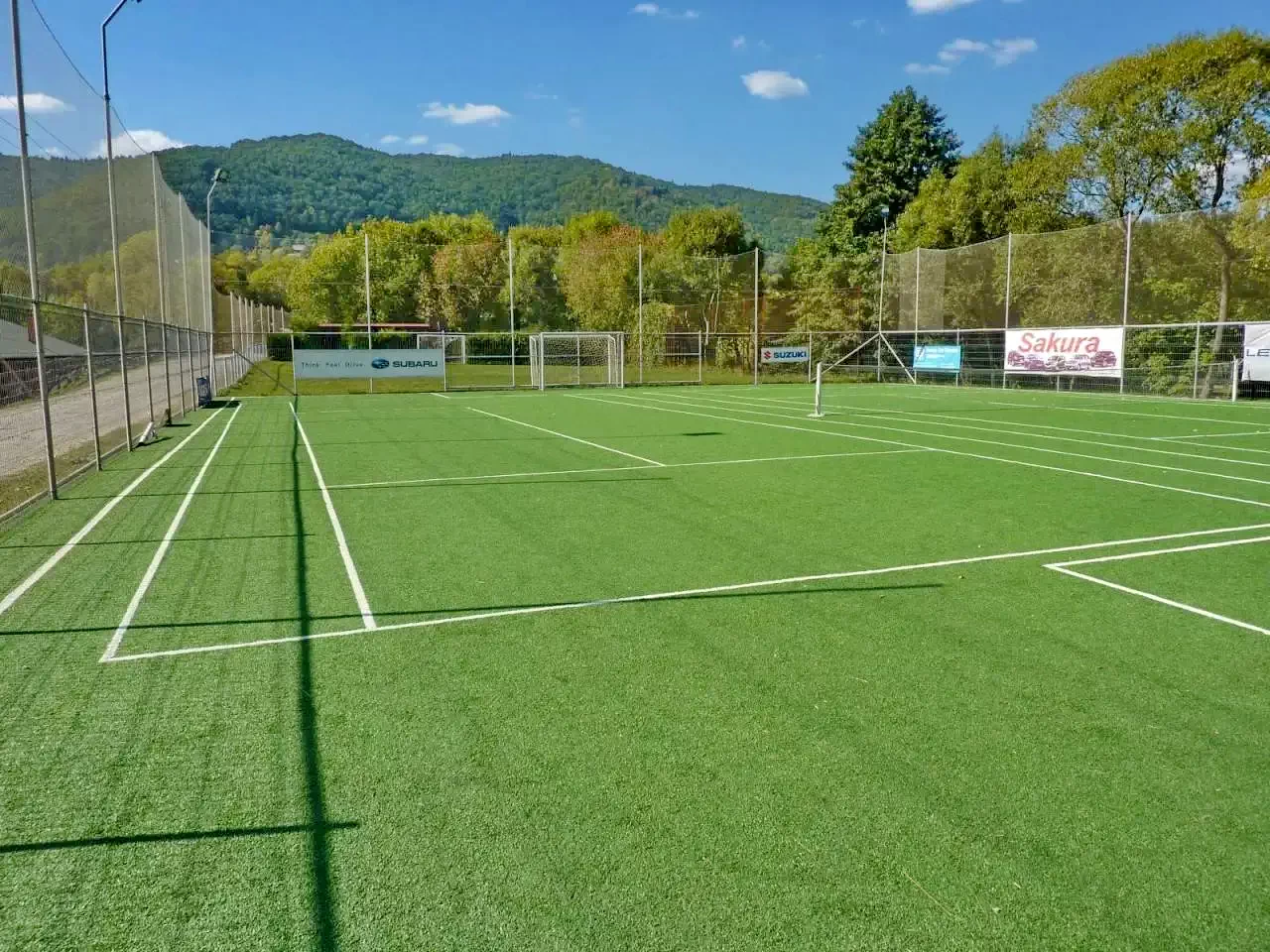 Sport és szórakozás: focipálya, lábteniszpálya és teniszpálya gondoskodik az aktív kikapcsolódásról.