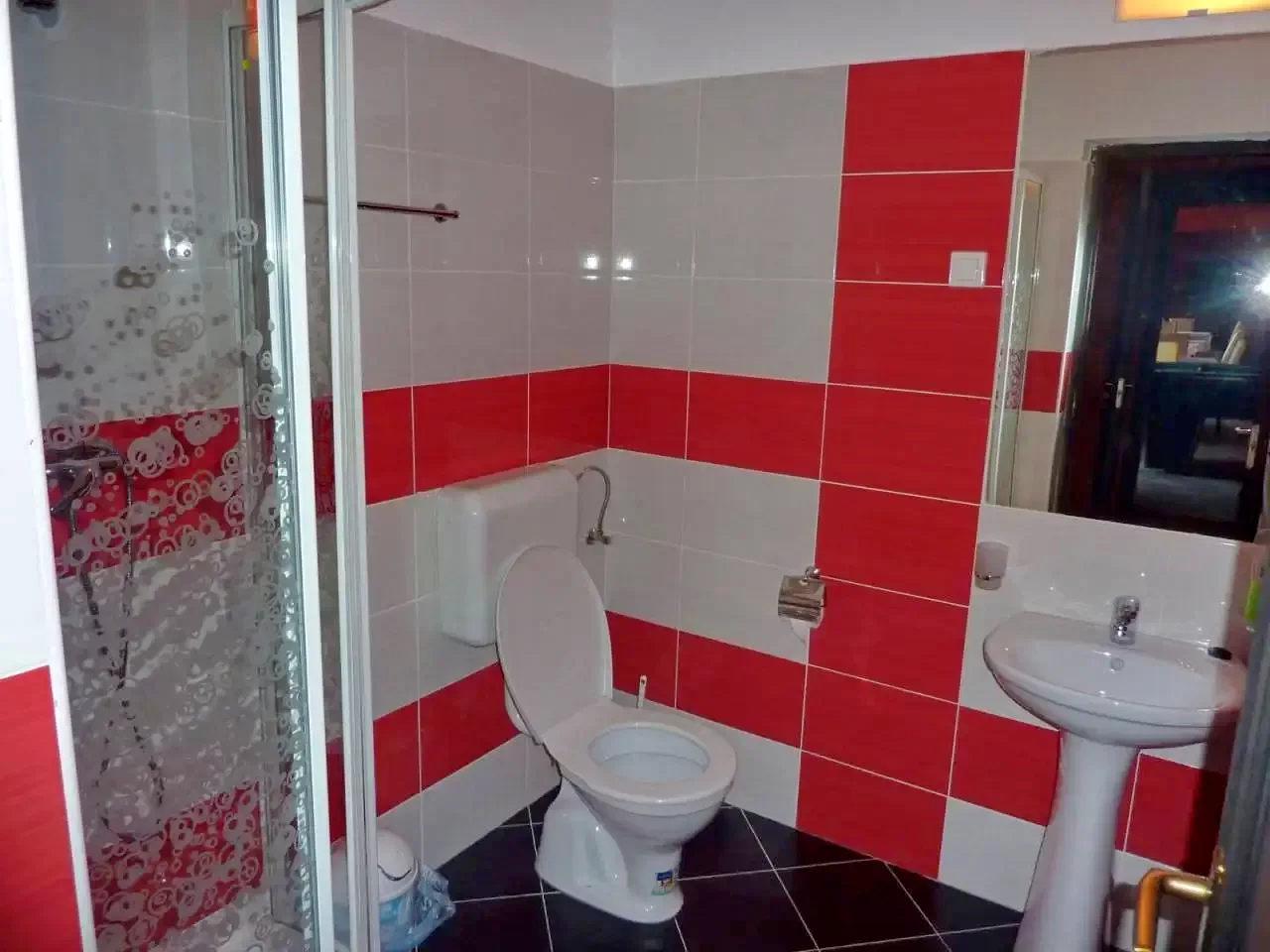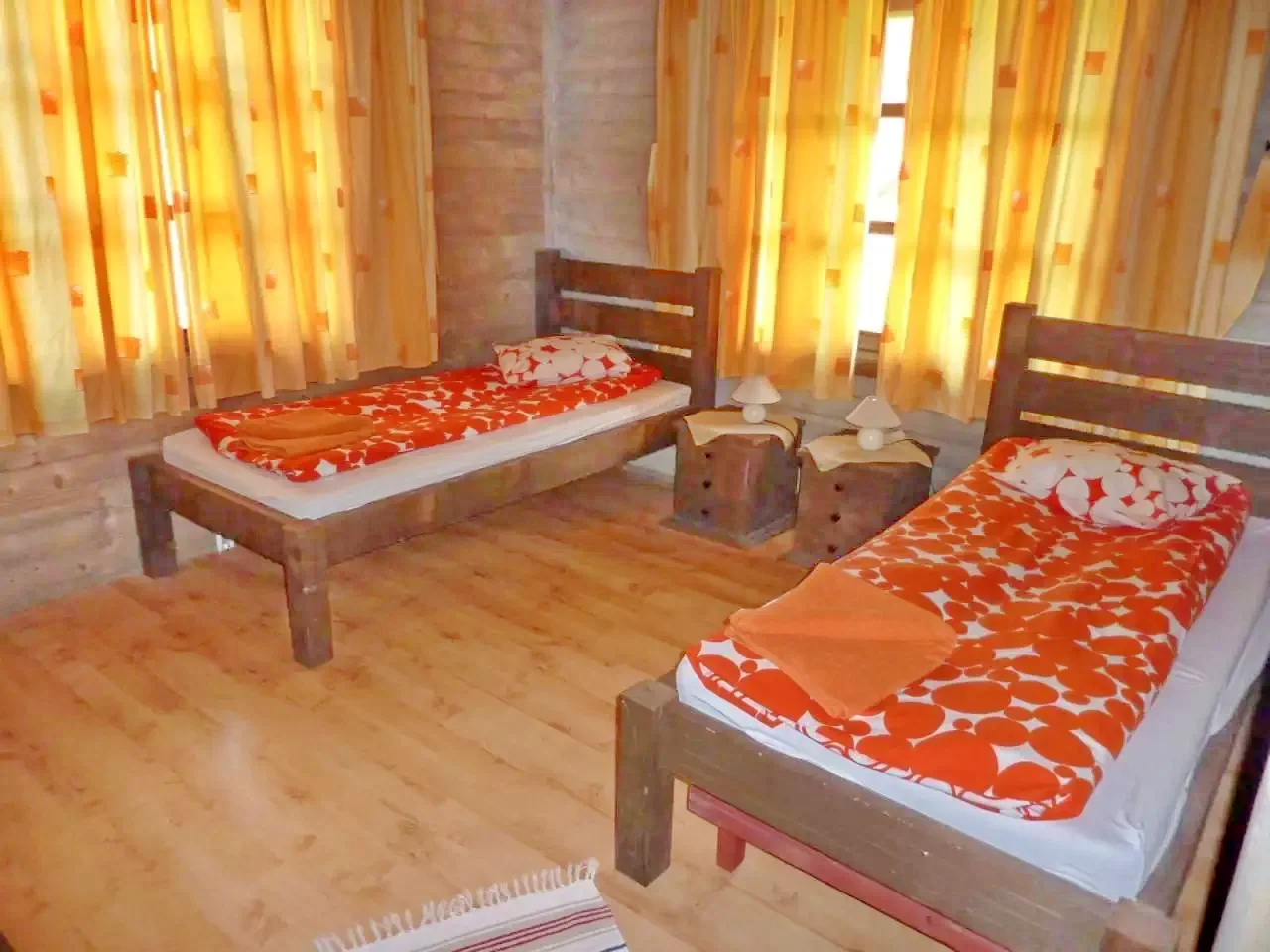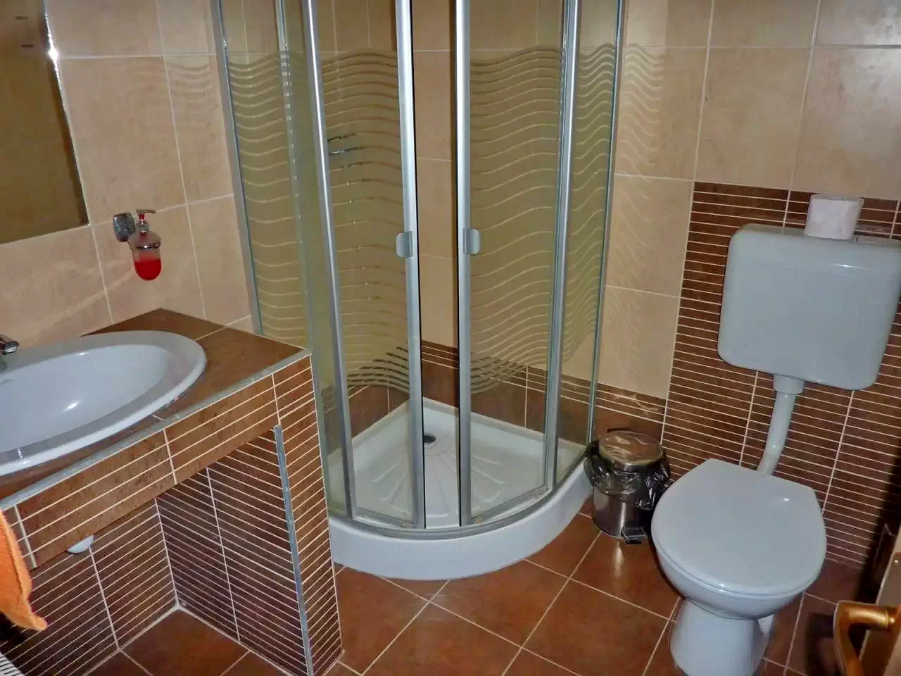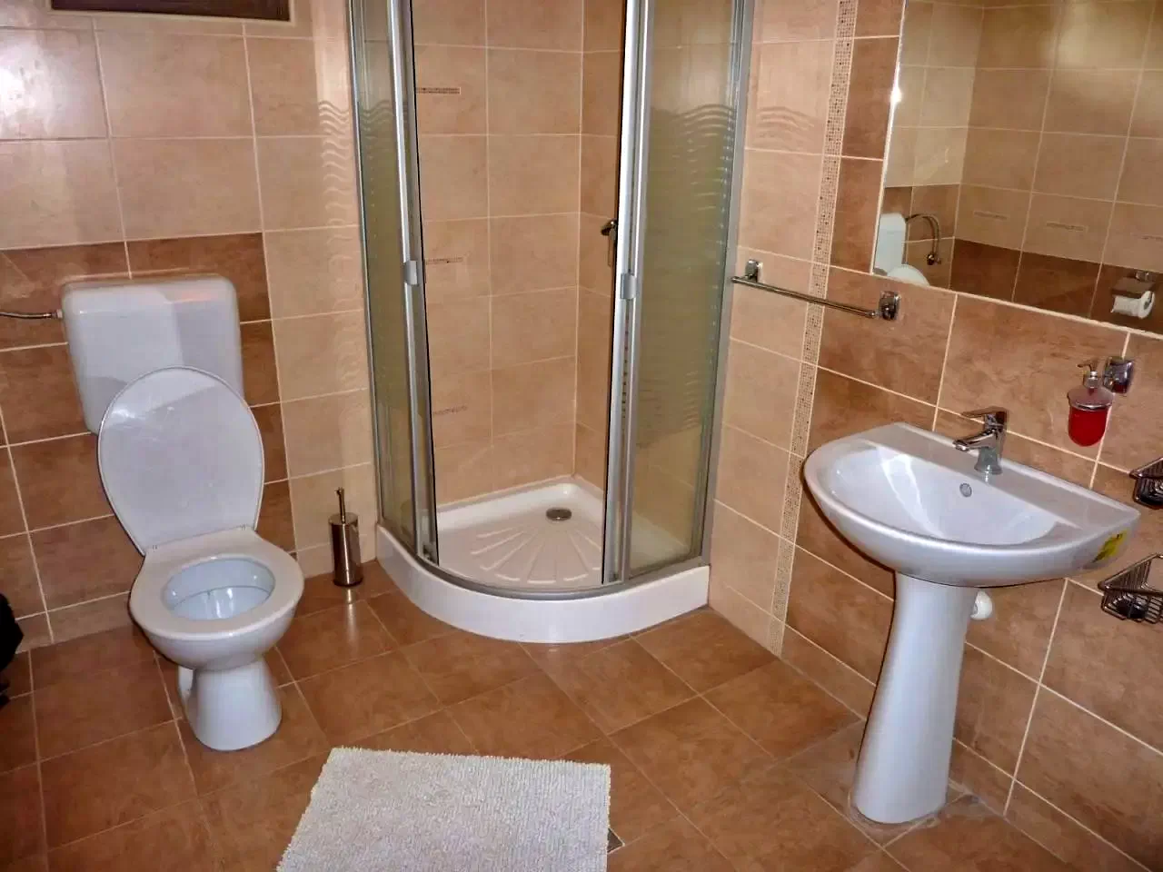 5 szoba: egyenként 2 fő + 1 pótágy, mindegyik saját fürdőszobával (zuhanyzó, vízöblítős WC, kézmosókagyló) és TV-vel.