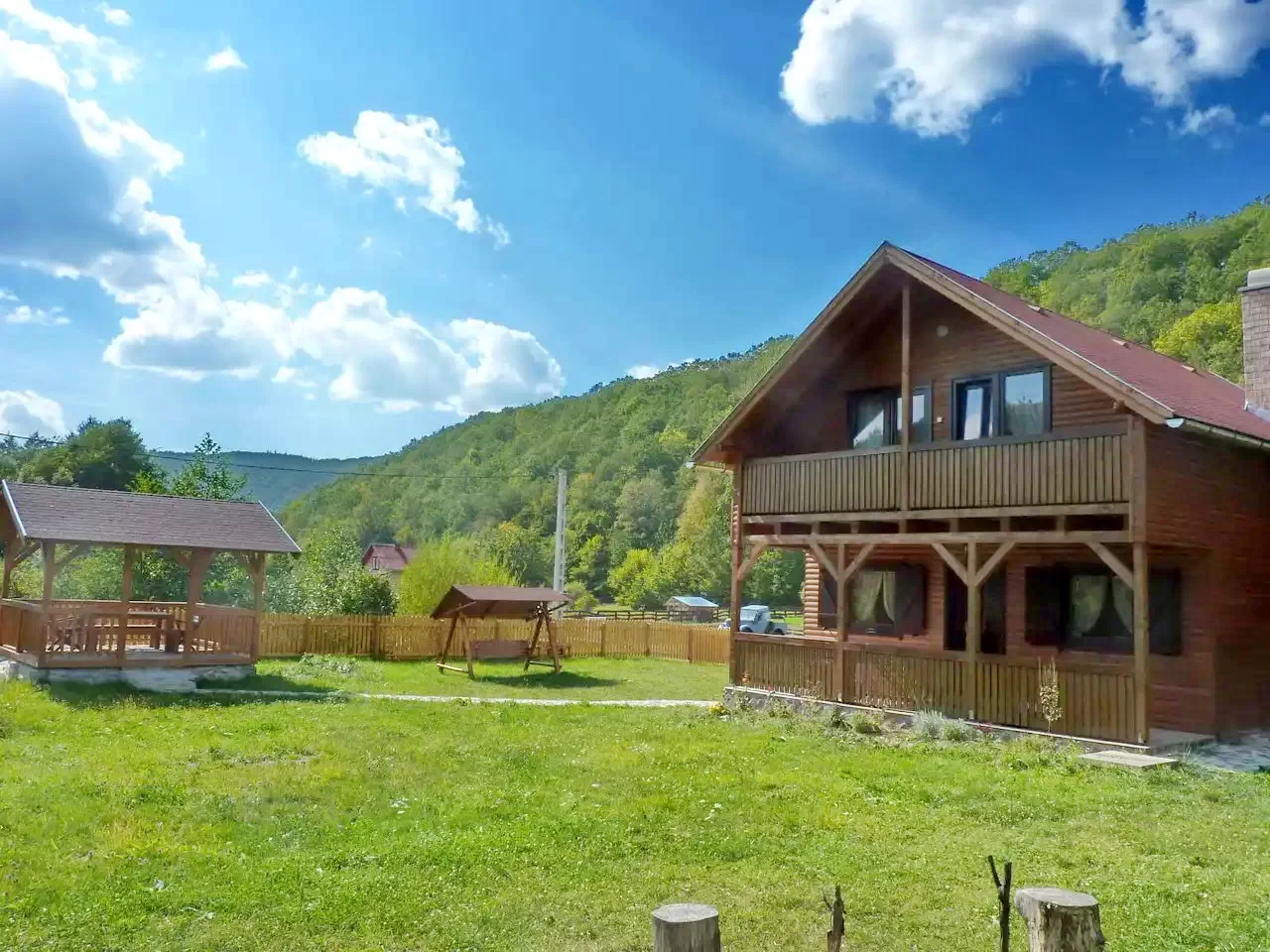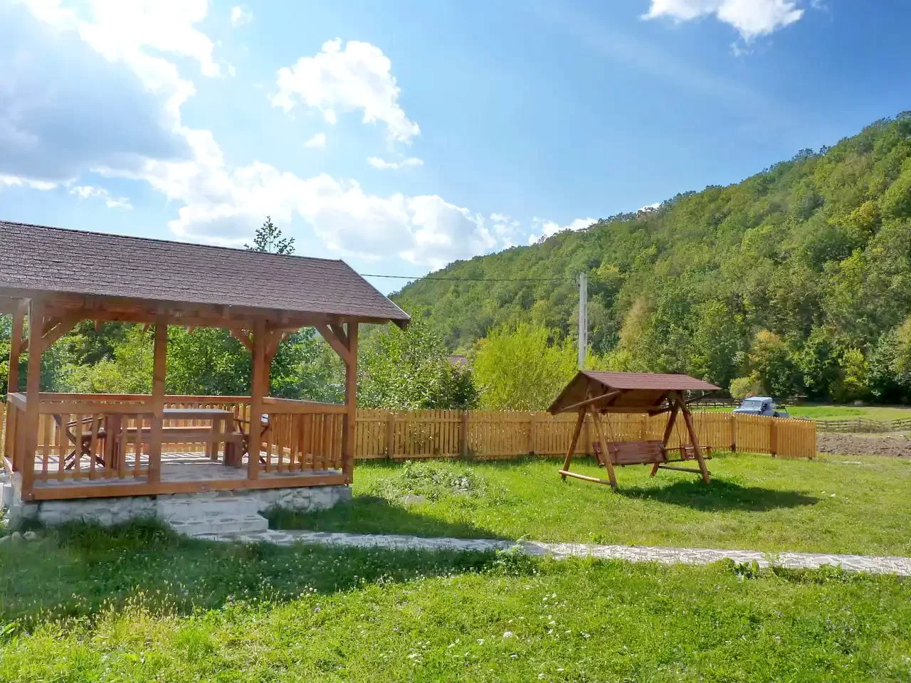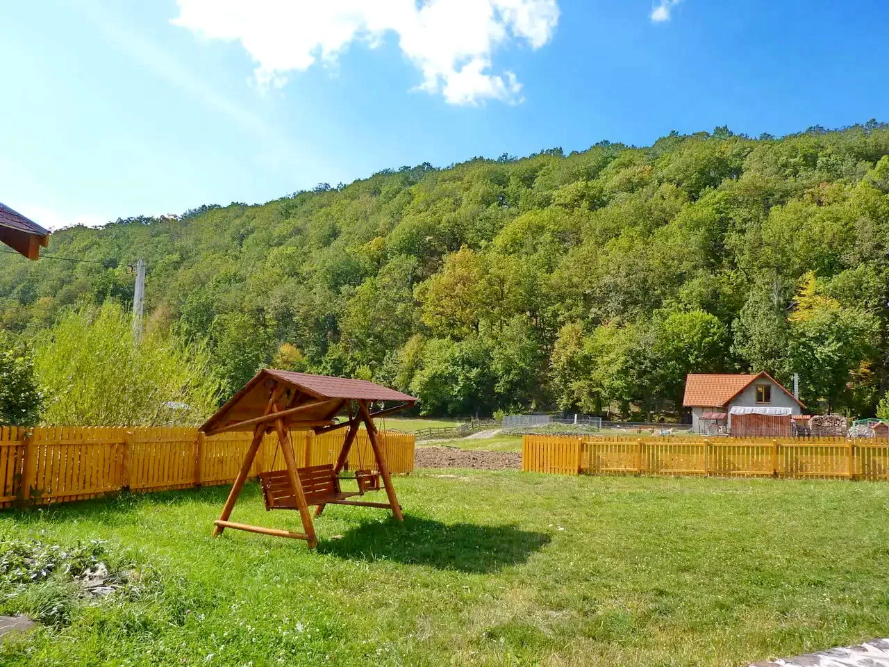 - A ház egy 1000 m²-es udvaron helyezkedik el, tökéletes nyugalmat kínálva a Hargita-hegység lankái között.