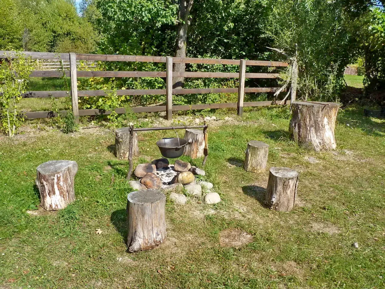 Szabadtéri sütögetés: a szabad tűzhely és bogrács ideális hagyományos ételek készítéséhez, mint a pörkölt vagy grillezett fogások.