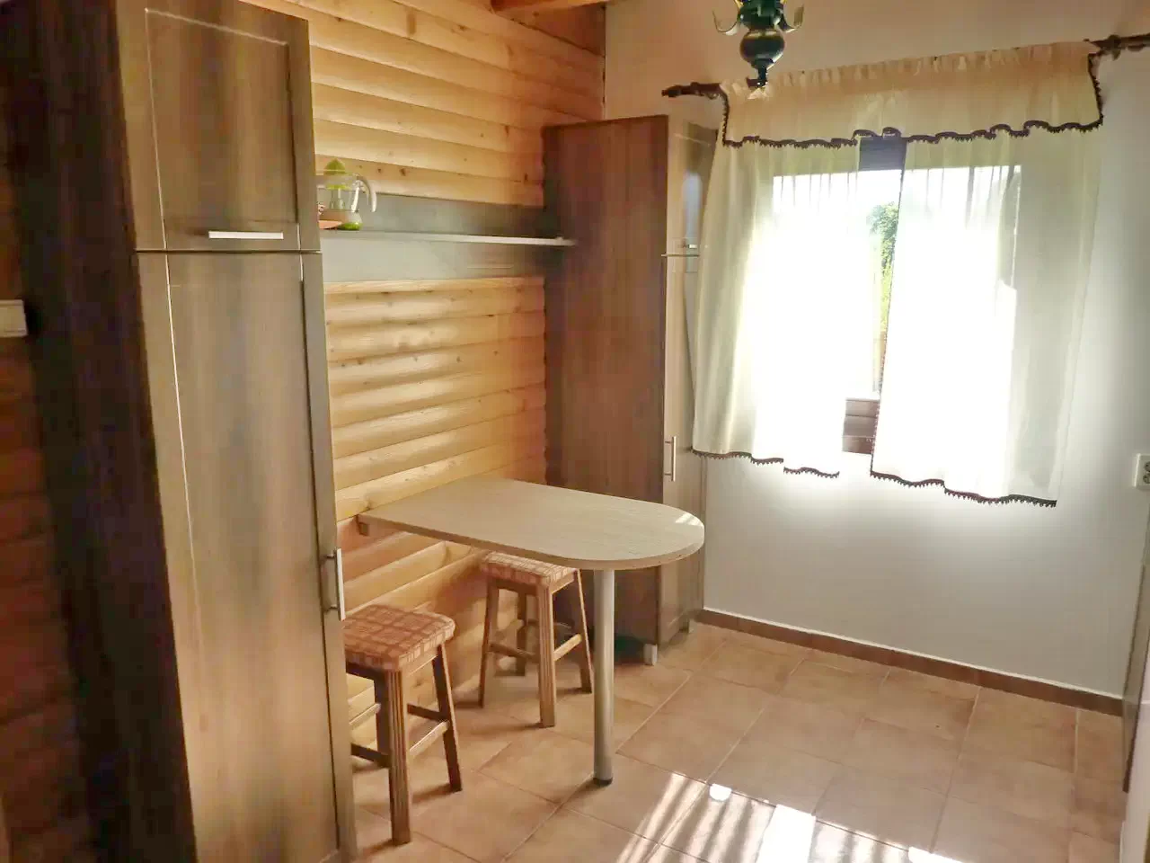 - A kulcsosház felszerelt konyhája lehetővé teszi az önellátó étkezést, ideális családi reggelikhez vagy baráti vacsorákhoz. A konyhában villanytűzhely, hűtőszekrény, mikrohullámú sütő, kenyérpirító, kávéfőző, teafőző, valamint edények és evőeszközök állnak rendelkezésre.