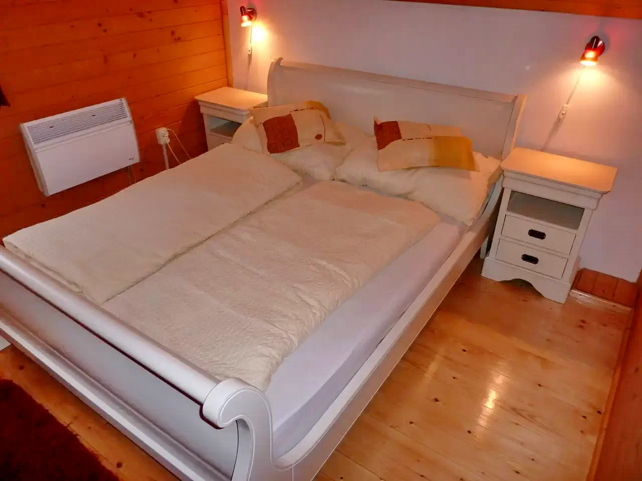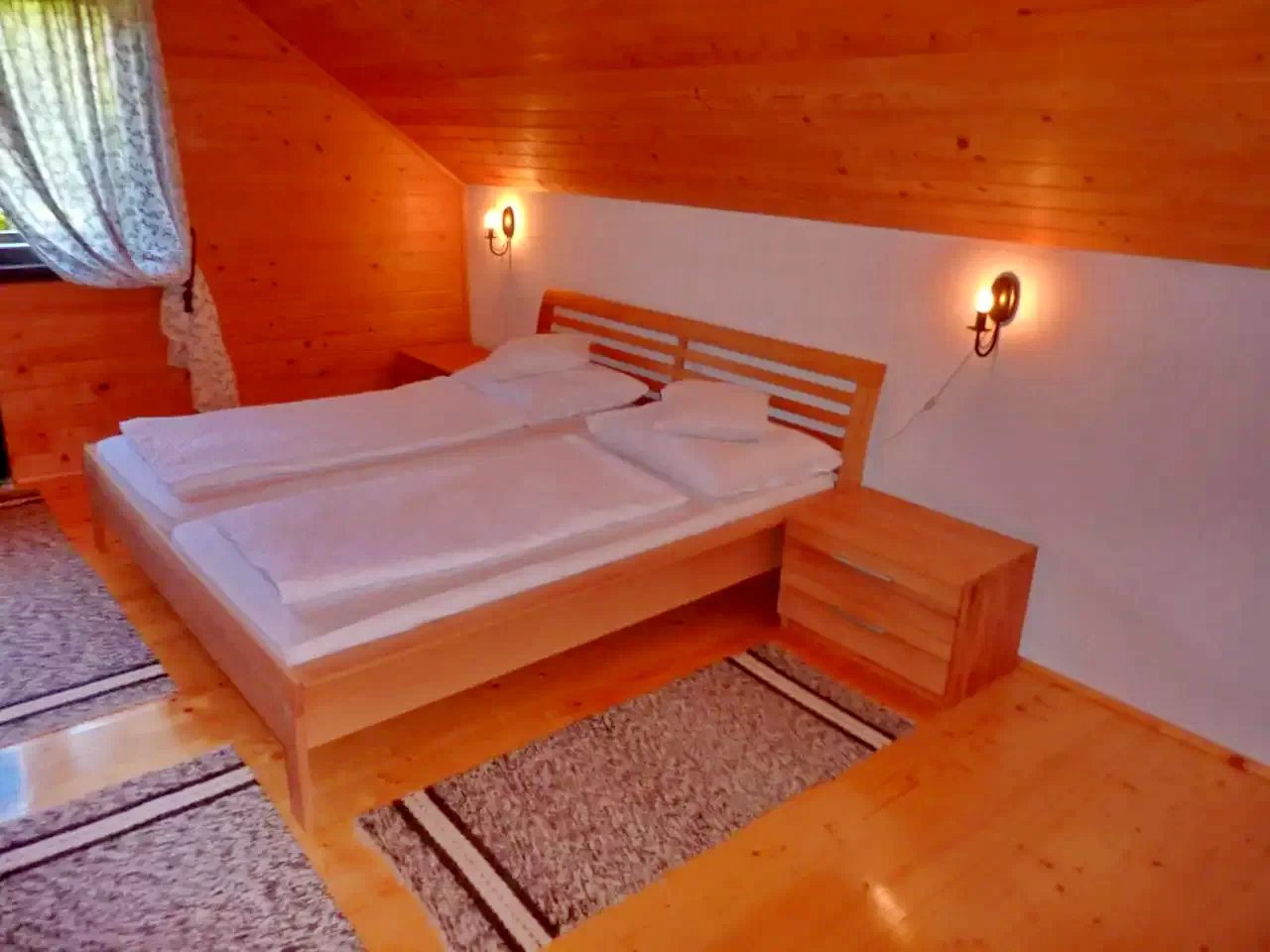 - Az emeleten négy szoba és egy különálló WC található: két szoba egy-egy kétszemélyes ággyal, a harmadik egy kétszemélyes és egy emeletes ággyal, a negyedik pedig két egyszemélyes ággyal rendelkezik.