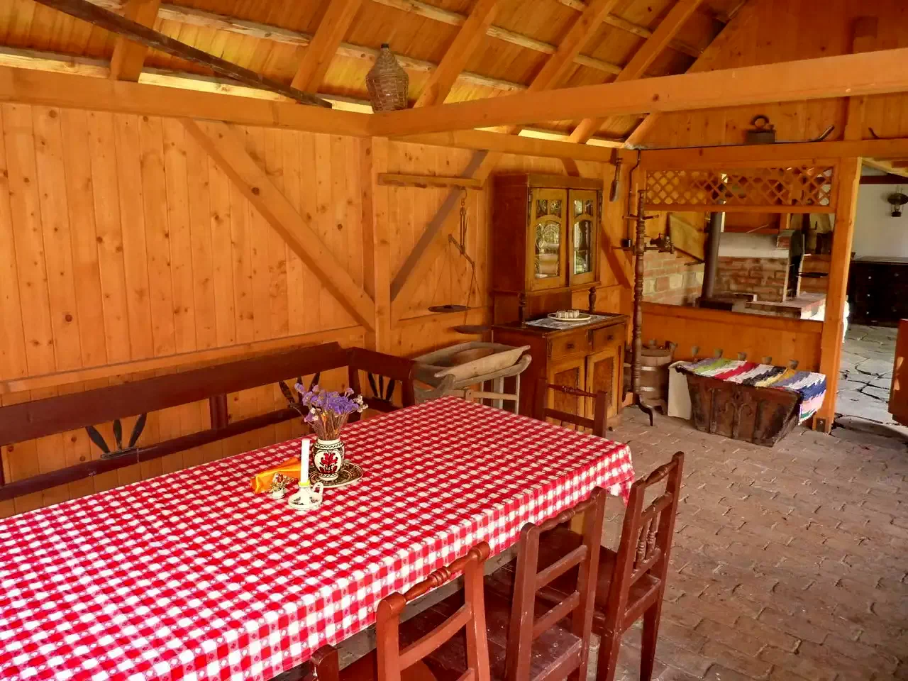 - Az udvarban flekkensütő kemence, kenyérsütő kemence, bogrács, tárcsalap és szabad tűzhely biztosítja a szabadtéri sütögetés élményét, tökéletes gulyások vagy grillezett ételek készítéséhez.