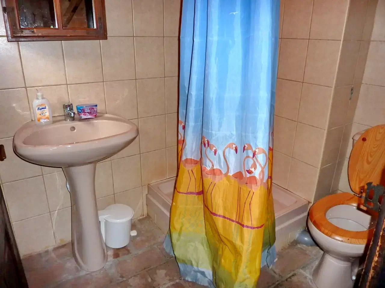 Szoba: 2 egyszemélyes ágy (2 fő), saját fürdőszobával (zuhanyzó, vízöblítős WC, kézmosókagyló).